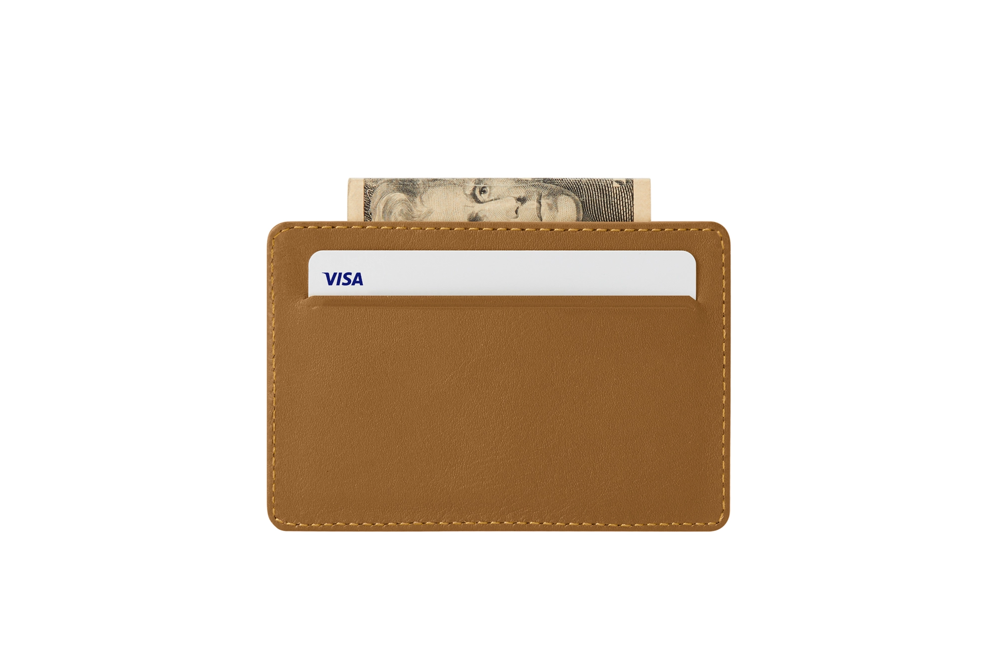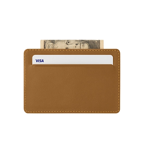 Pour ceux qui préfèrent sortir léger, utiliser ce porte-cartes est un pur bonheur. Fabriqué en cuir naturel, il se glisse aisément dans vos poches ; avec une fente pour carte bancaire de chaque côté et une poche ventrale au milieu pour insérer d'autres cartes ou documents. Vous pouvez même y glisser quelques petits billets soigneusement pliés.