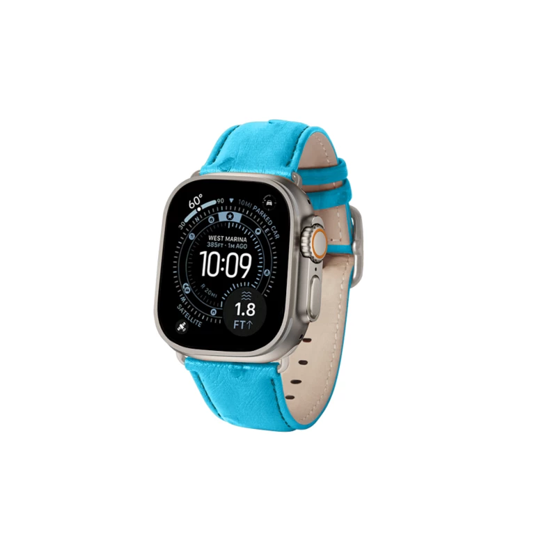 Une collection de bracelets en cuir exceptionnels pour faire de votre Apple Watch Ultra 3 une véritable montre d'exception ! Avec sa doublure en cuir hypoallergénique, ce bracelet haut de gamme est livré avec ces 2 inserts et une boucle siglée Lucrin. Choisissez parmi une panoplie de cuir des plus exotiques comme l'autruche véritable au plus exclusifs comme le veau Badia, et ceci dans une infinité de couleurs. Vous pouvez aussi graver vos initiales sur le brin court.
