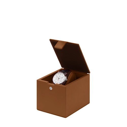 Cette très élégante boîte est la protection idéale pour votre montre de précision. Fabriqué autour d'une structure en bois habilement gainée de cuir authentique, ce coffret pour une montre de luxe possède un coussin amovible. Cet écrin pour une montre est muni d’une fermeture à bouton-pression pour une sécurité accrue. Ce boîtier montre raffiné peut être personnalisé avec une belle gravure et est disponible dans un fantastique éventail de couleurs.