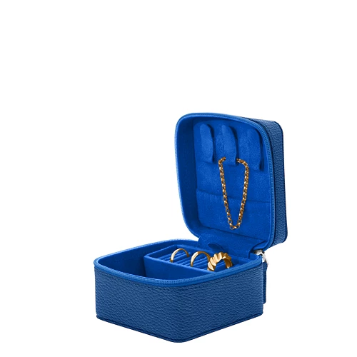 Cette boîte à bijoux signée LUCRIN Geneva est l'accessoire idéal pour vos bijoux. De format compact, elle a été spécialement conçue pour optimiser votre espace. Dites adieu aux coiffeuses encombrées et aux accessoires emmêlés : avec des emplacements dédiés aux bagues et aux boucles d’oreilles, ce coffret est tout simplement parfait pour vos voyages. Son couvercle est doté d’une poche plate élastique pouvant accueillir de petits objets, et la fermeture éclair permet à vos bijoux de rester en place, tandis que l’intérieur doux et soyeux en microfibre les protège durablement. Vous pouvez bien entendu choisir la couleur et le type de cuir afin d’assortir cette magnifique boîte à bijoux à vos accessoires de voyage, voire lui ajouter un monogramme pour une touche d’originalité supplémentaire ou pour offrir un cadeau vraiment personnalisé. La partie intérieure est amovible si vous souhaitez ranger ou transporter des pièces plus importantes.