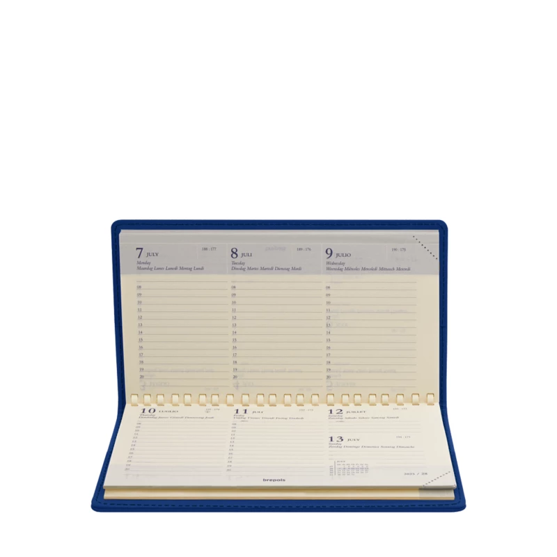 Agenda de poche 2026 en cuir de première qualité. Livré avec un calendrier semainier Omniplan de Brepols spiralé avec une semaine sur 2 pages: L'agenda contient aussi un répertoire téléphonique, un planning et des cartes du globe. C'est un agenda/Organizer basé sur l'année civile (vendu sans stylo).