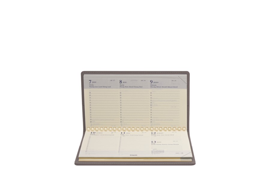 Agenda Semainier (10 x 17 cm) - Taupe Clair - Cuir Lisse