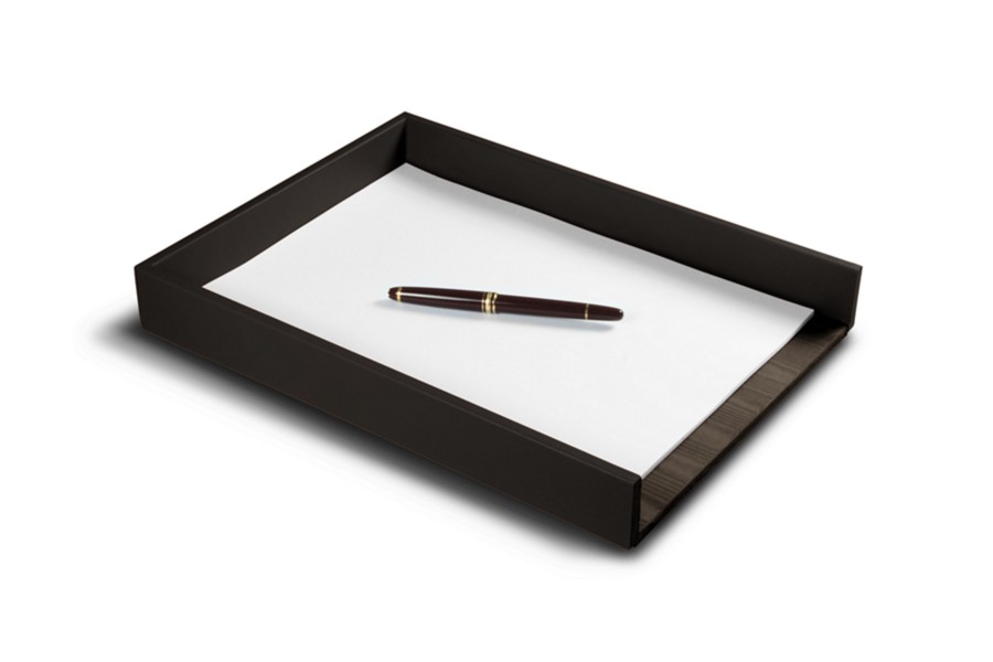 Corbeille à courrier A4 - Marron Foncé - Cuir Lisse