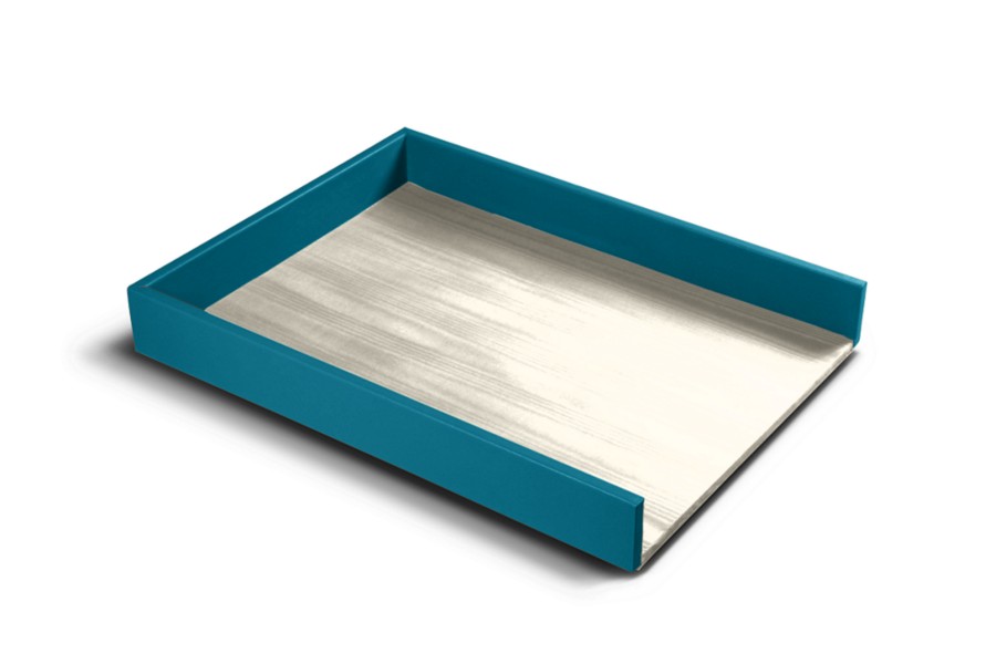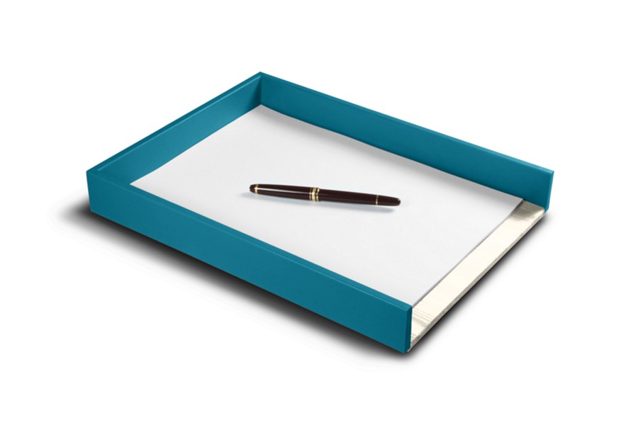 Corbeille à courrier A4 - Turquoise - Cuir Lisse