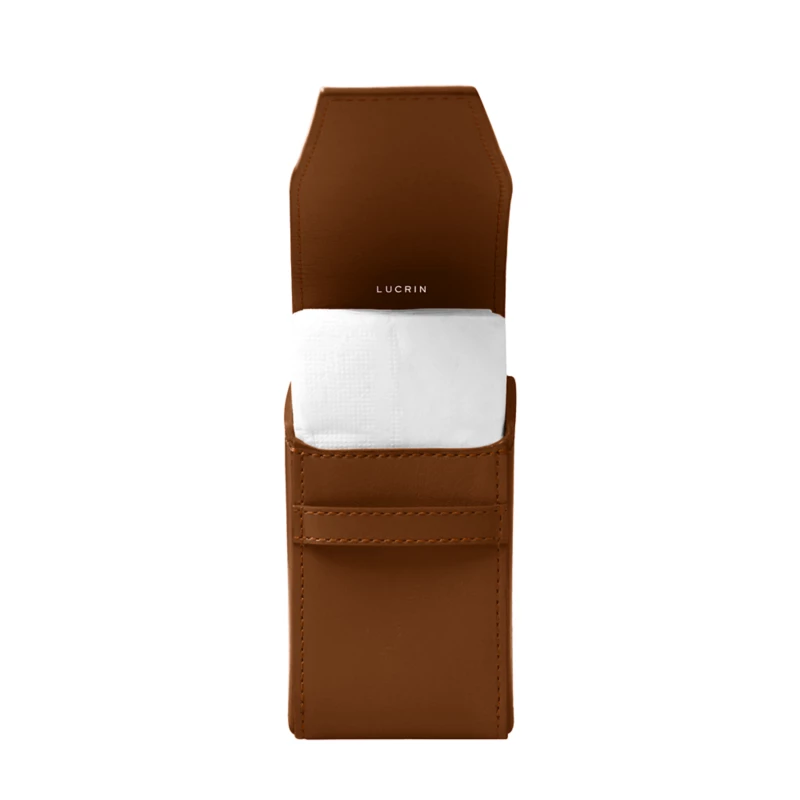 C’est un accessoire original, luxueux et très pratique imaginé par les designers et artisans maroquiniers de Lucrin. La pochette mouchoirs en cuir se ferme avec rabat et l’intérieur est en simili cuir ton-sur-ton. Ses dimensions vous permettent de la glisser dans votre sac ou cartable aisément. Vous pouvez y accommoder 10 mouchoirs en papier (10.5 x 5.5 cm) sans problème, et surtout personnaliser cet étui pour mouchoirs au gré de vos envies.