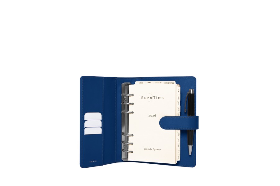 Intérieur : 3 poches pour cartes de crédit / feuilles hebdomadaires en 6 langues / livré complet avec calendrier 1 semaine sur 2 pages / répertoire téléphonique / mémo / notes.