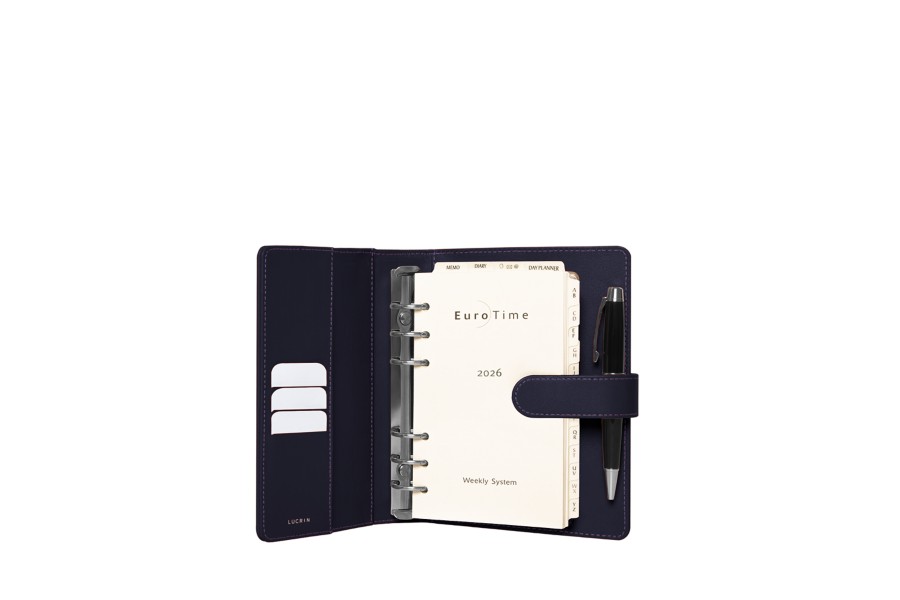 Intérieur : 3 poches pour cartes de crédit / feuilles hebdomadaires en 6 langues / livré complet avec calendrier 1 semaine sur 2 pages / répertoire téléphonique / mémo / notes.
