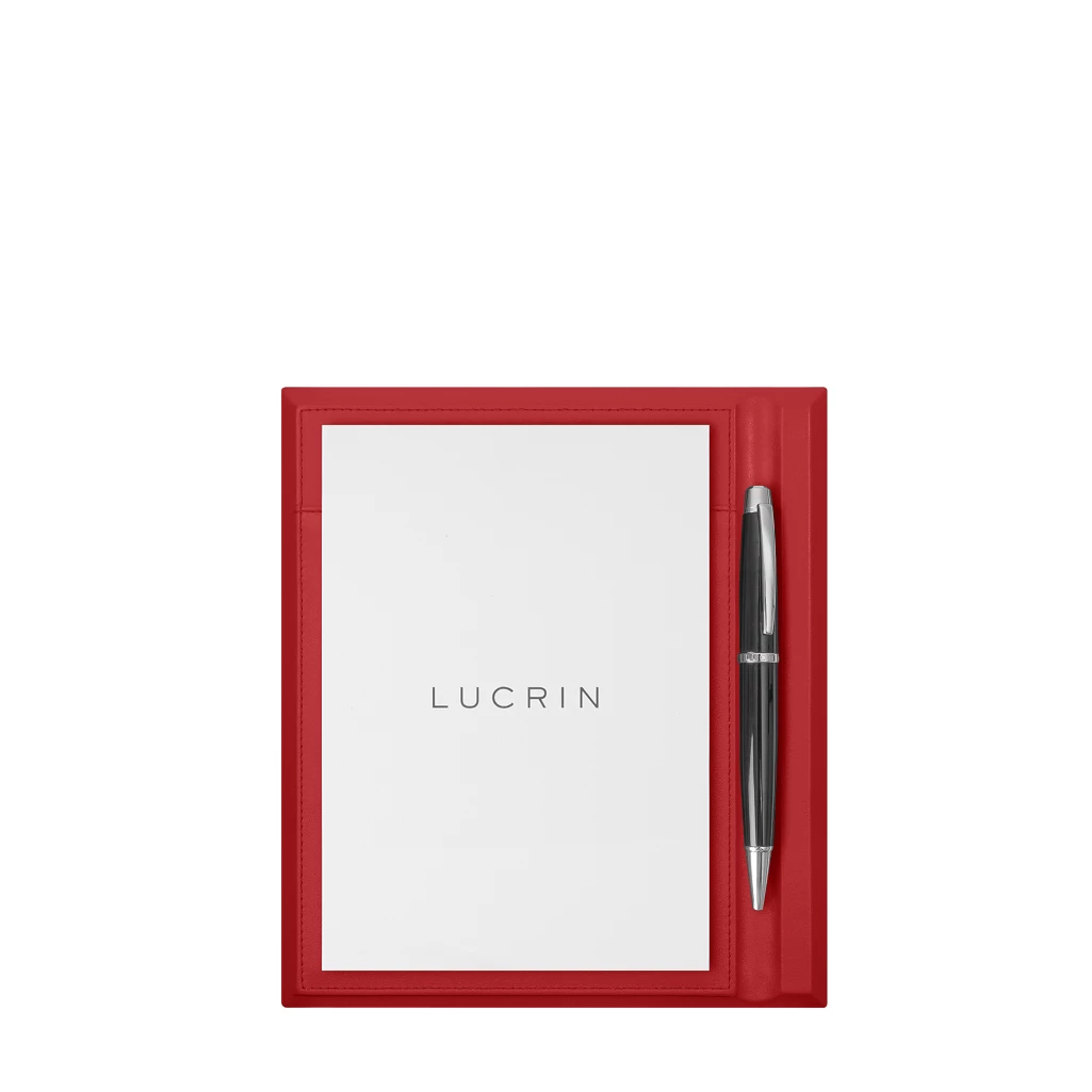 Pensé pour les esprits organisés, ce porte bloc-notes A5 et stylo accompagne vos idées du quotidien avec simplicité. Sa structure en cuir pleine fleur, associée à une base en bois, lui confère stabilité et caractère. Compact et élégant, le porte bloc-notes A5 LUCRIN s’intègre naturellement à tout bureau. Un emplacement dédié accueille votre bloc-notes A5 — inclus avec votre achat — tandis qu’un compartiment latéral maintient votre stylo à portée de main (stylo non inclus). Fonctionnel et personnalisable, ce porte bloc-notes en cuir est disponible dans une large palette de couleurs. Personnalisez le vôtre dès maintenant pour structurer votre bureau avec style.