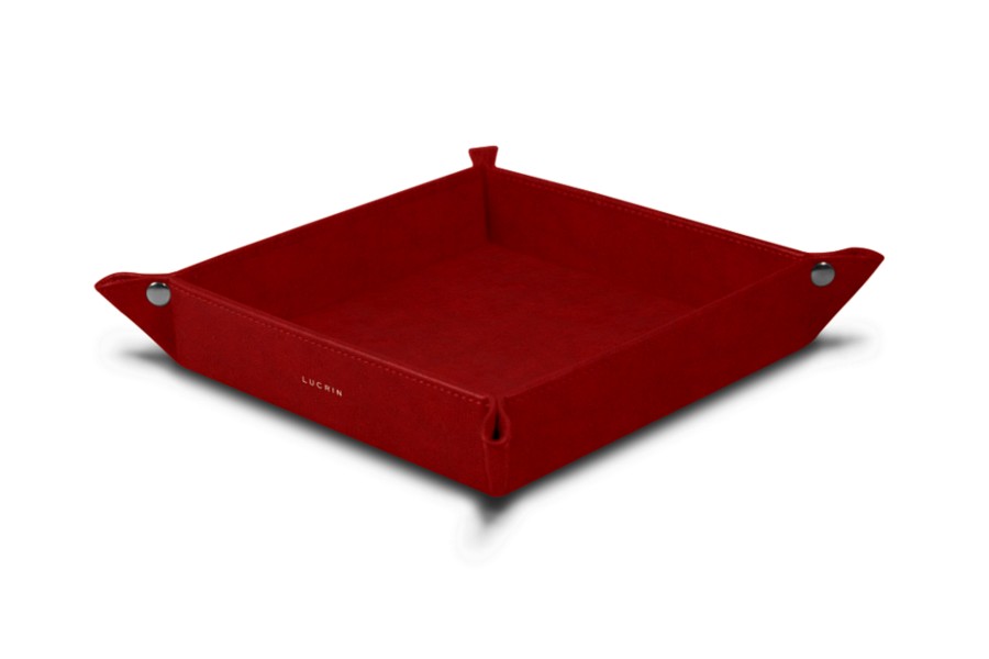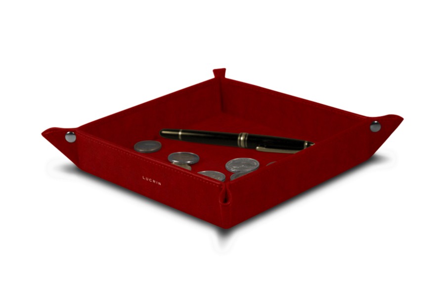 Vide poche moyen carré (16 x 16 x 3,5 cm) - Carmin - Cuir végétal