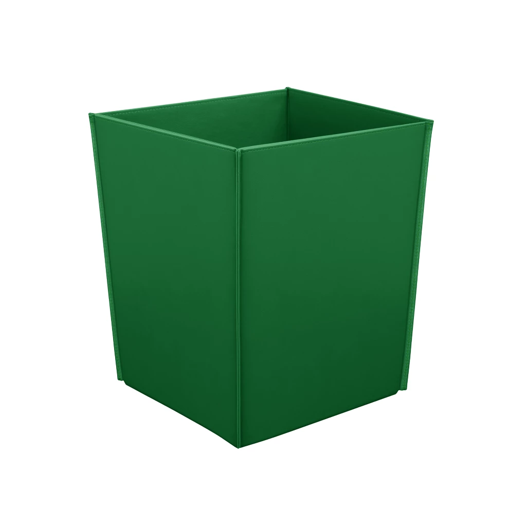 Corbeille à Papier Carré Vert  - Cuir Lisse