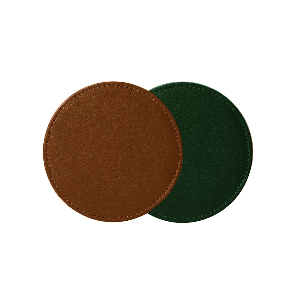 Sous-verre rond - Paire Cognac-Vert Foncé  - Cuir Lisse