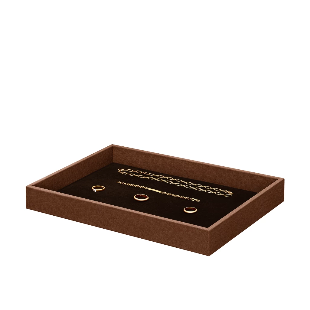 Ce plateau de présentation en cuir est un accessoire parfait pour mettre en valeur tous types de bijoux. Ses dimensions permettent de l’utiliser aussi bien pour un collier que pour une montre.