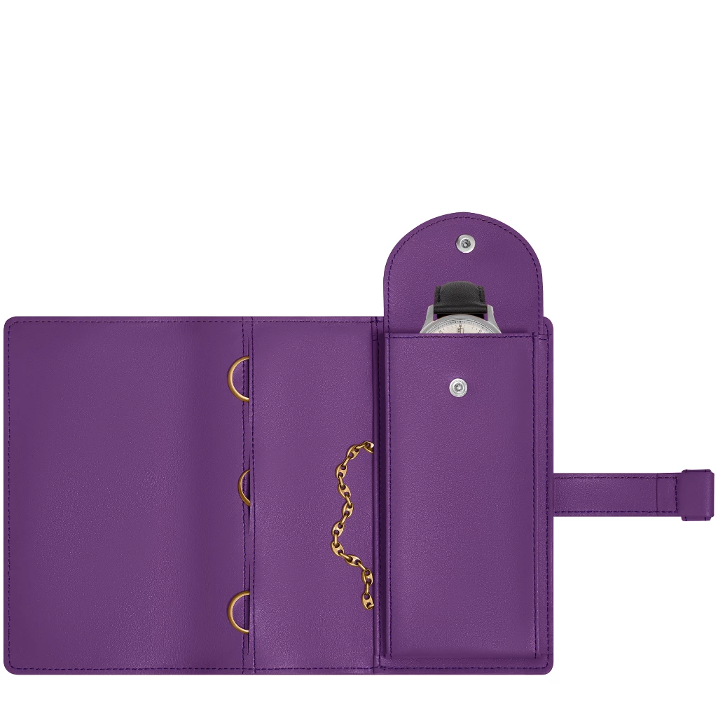 Pochette fitness pour montre et bijoux en cuir véritable. Pochette tout cuir intérieur et extérieur. Idéale pour ranger ses bijoux. Fermeture avec passant cuir. A droite un compartiment réservé à la montre. Une poche plate pour les bracelets ou colliers. Trois poches pour bagues.