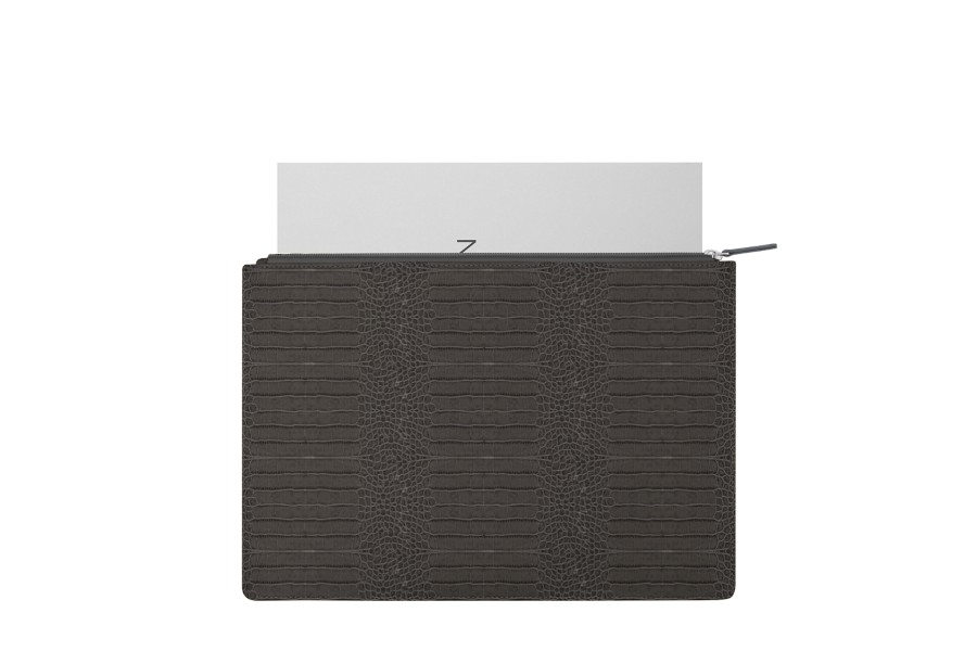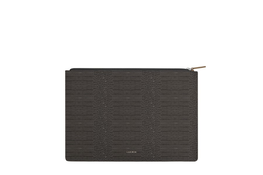 Serviette plate A4 - Gris Souris - Veau Façon Crocodile
