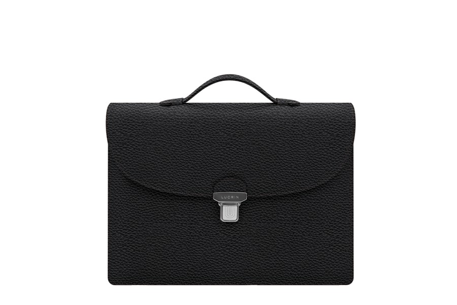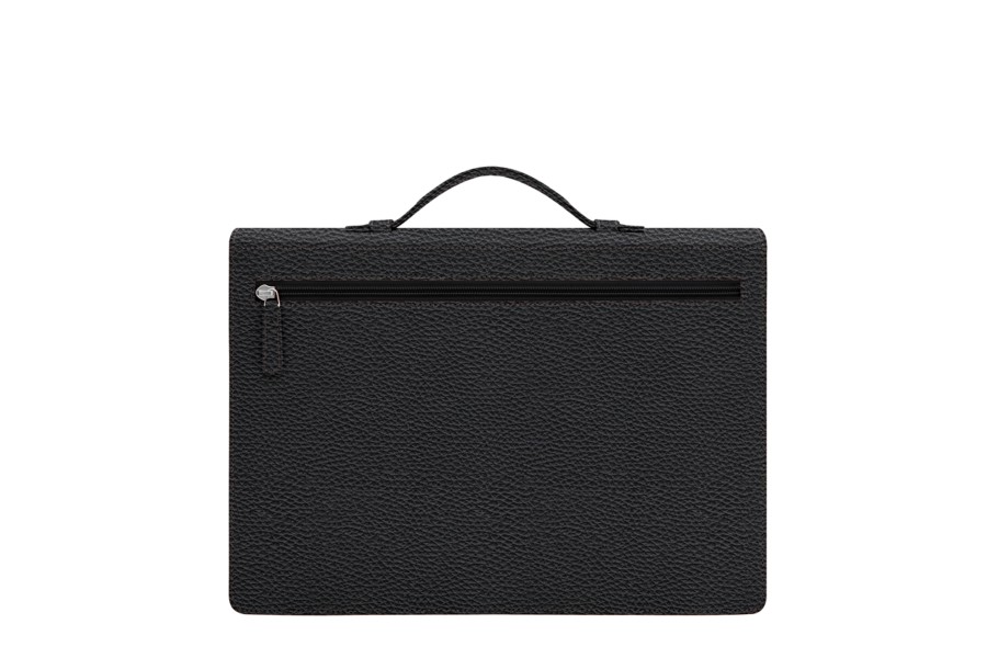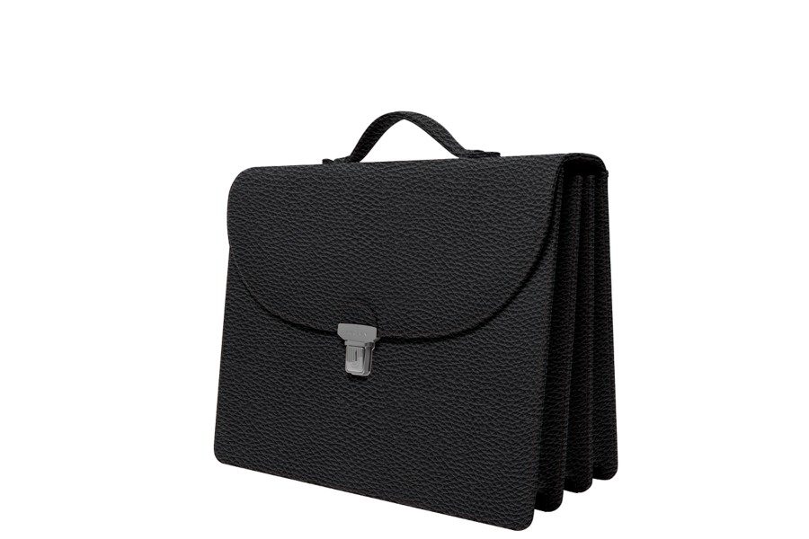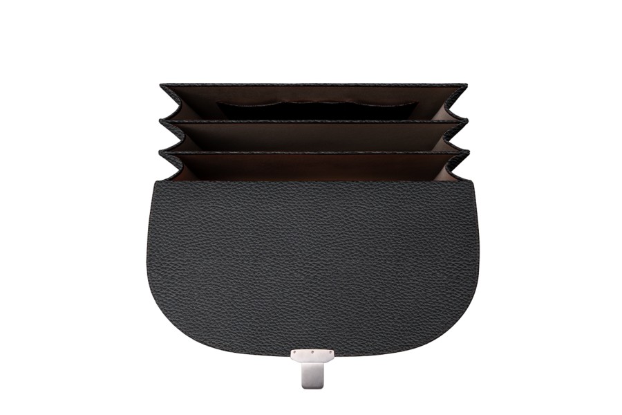 Cartable 3 soufflets - Noir - Cuir Grainé
