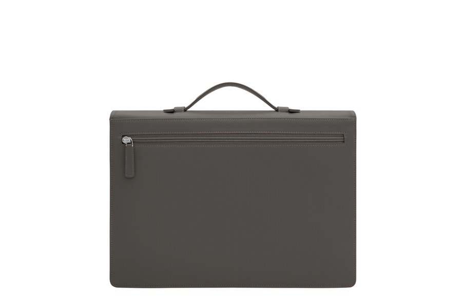 Extérieur : Une poche journal au dos. Serrure en nickel matte.