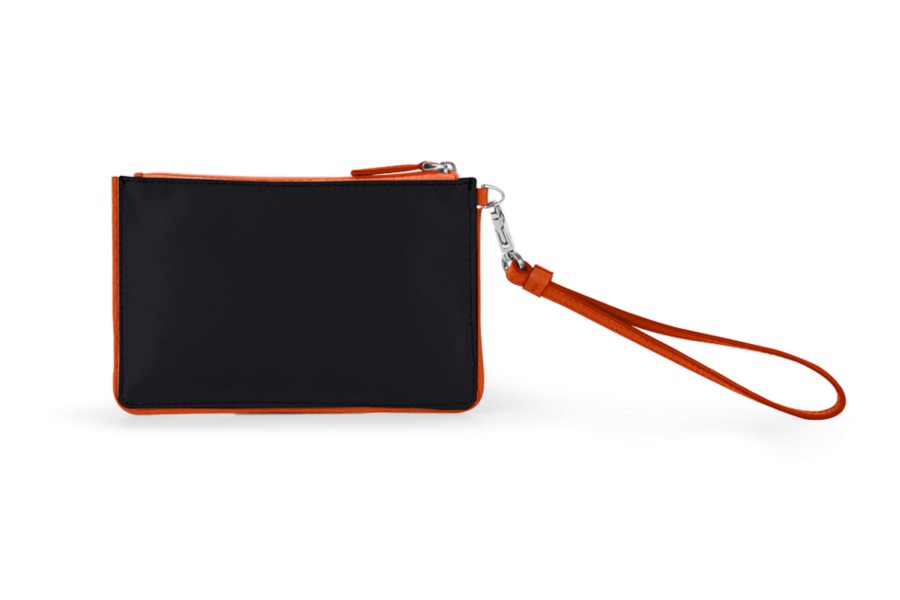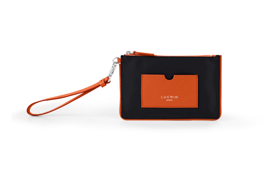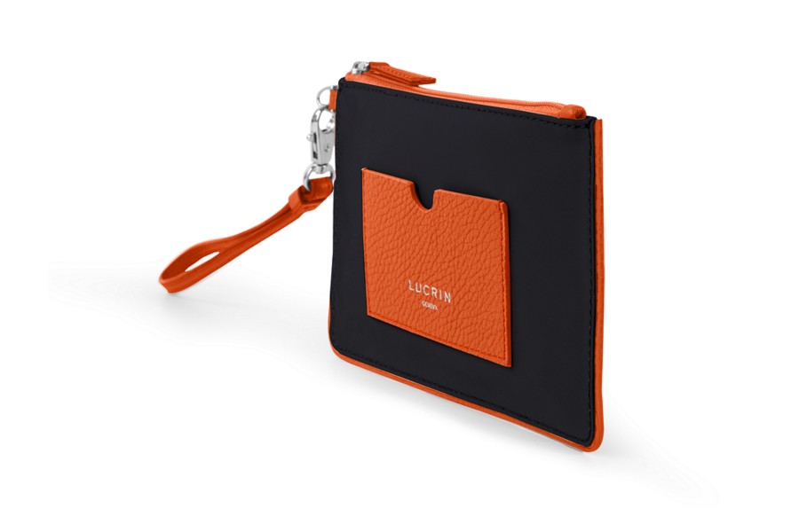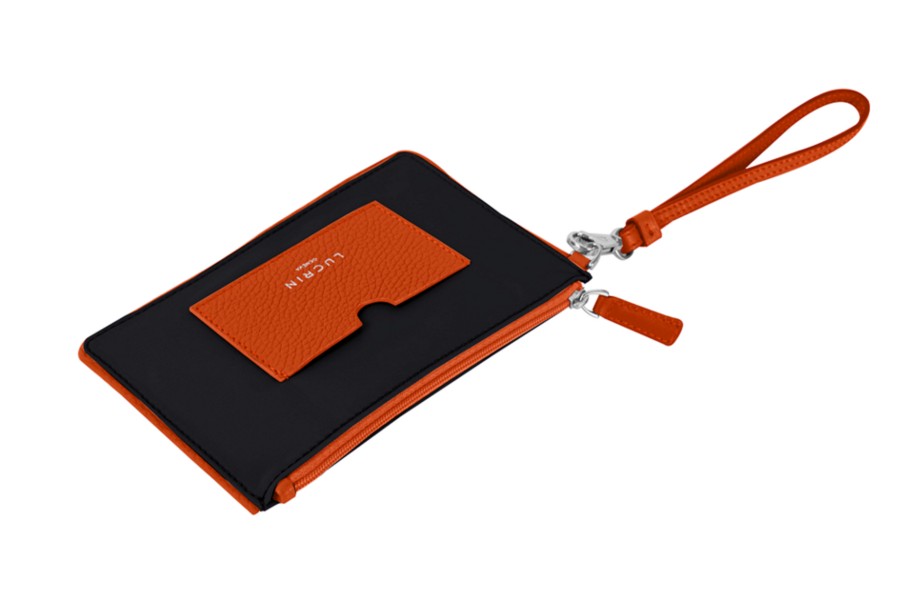 Petite Pochette zippée en nylon-cuir - Orange-Noir - Nylon haut de gamme