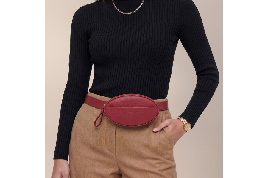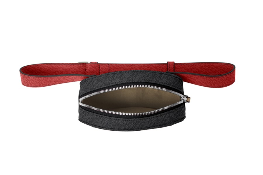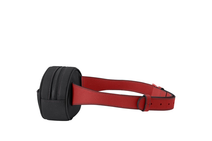 Sac Banane Ovale L5 - Noir-Rouge - Cuir Grainé