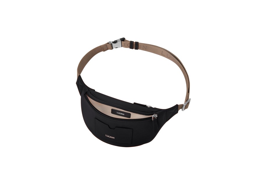 Sac banane avec bandoulière - Noir - Cuir Lisse