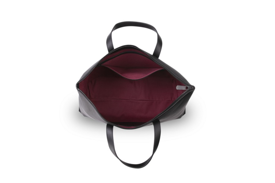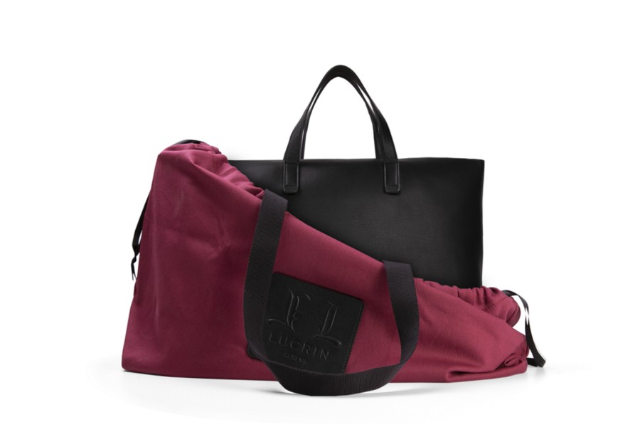 Édition Limitée Spéciale Anniversaire 25 ans de Lucrin en Cuir de Veau Noir et intérieur en Coton Grenat. Pièce originale numérotée de 1 à 25, avec logo spécial commémoratif des 25 ans de la maison.