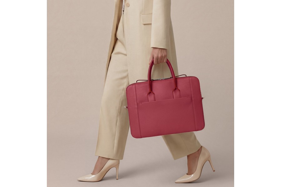 Le cuir de vachette grainée est très prisé dans la maroquinerie, notamment pour les pièces de bagagerie. Le grain sélectionné par Lucrin est assez léger, mais apporte cette touche de sensualité si particulière au toucher. Ce cuir est résistant et il est moins sensible aux éraflures du quotidien.