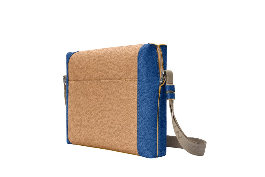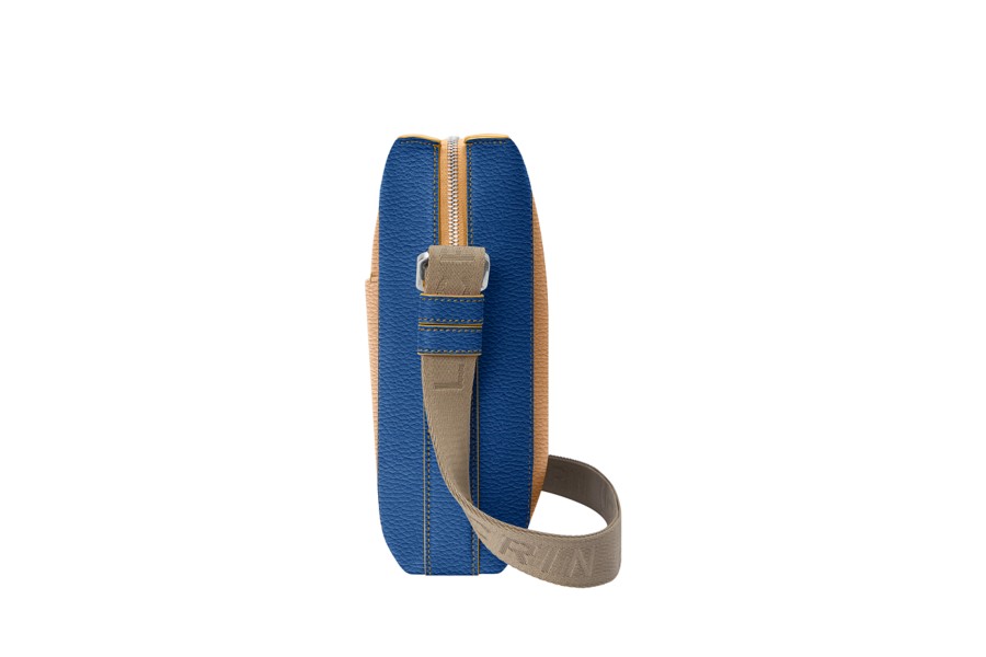 Mini Besace L5 - Naturel-Bleu Roi - Cuir Grainé