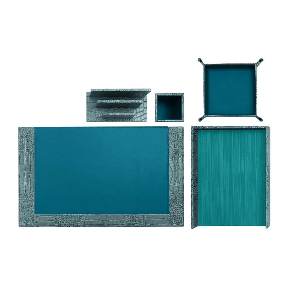 Set de bureau Façon Crocodile Turquoise  - Veau Façon Crocodile