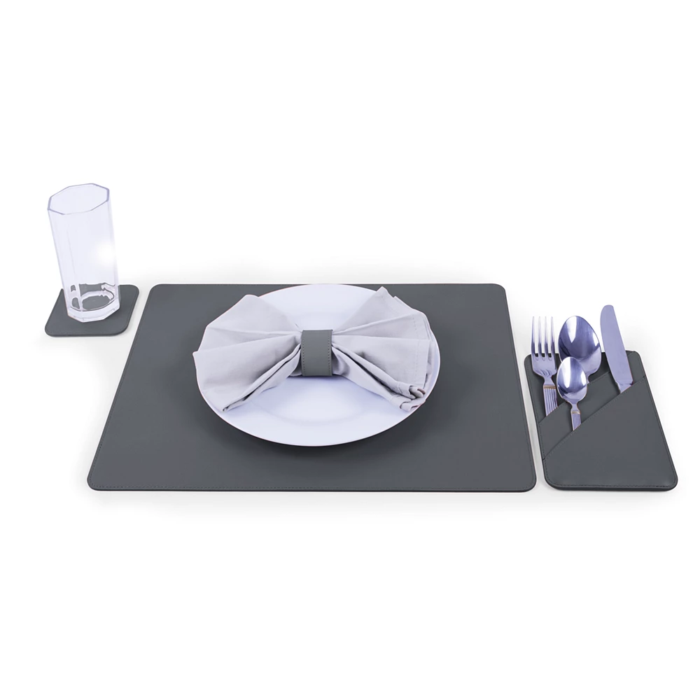 Set de table luxe Gris Souris  - Cuir Lisse