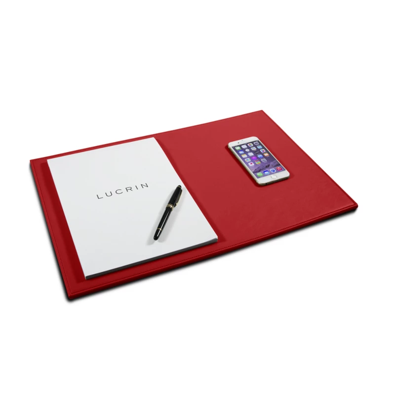 Voici la seconde taille de sous-main rigide de notre collection. Ses dimensions se prêtent particulièrement aux salles de conférence disposant d'une table d'une certaine dimension. Le cuir pleine fleur utilisé pour sa fabrication assure un confort d’écriture incomparable et une longévité impressionnante. Cet élégant dessus de bureau est un véritable élément de décoration à prendre en compte lors de l’aménagement de votre place de travail ou salle de conférence. Le dessous en microfibre permet son utilisation sur tous les bureaux, même les plus fragiles.