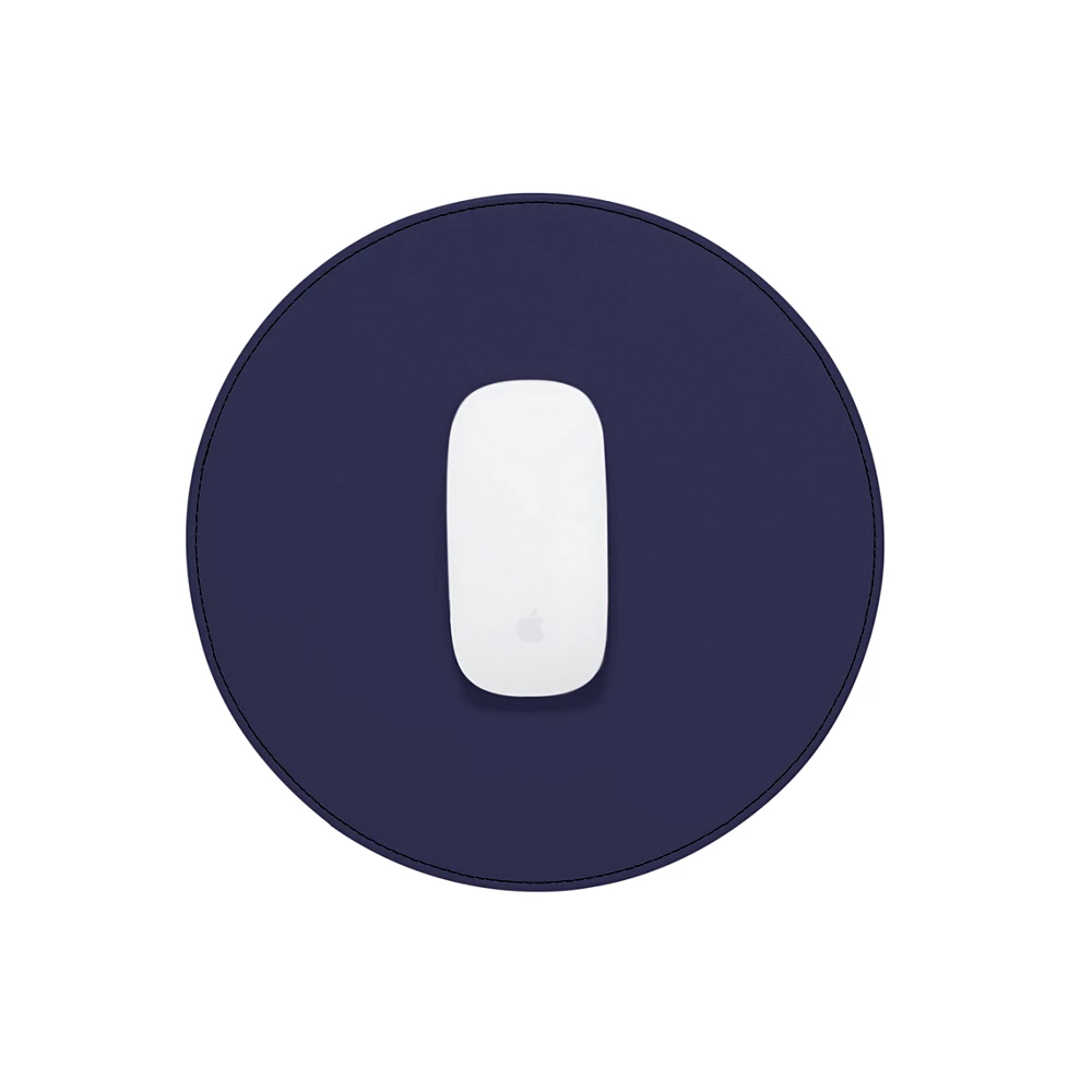 Tapis de souris rond Bleu Marine  - Cuir Lisse