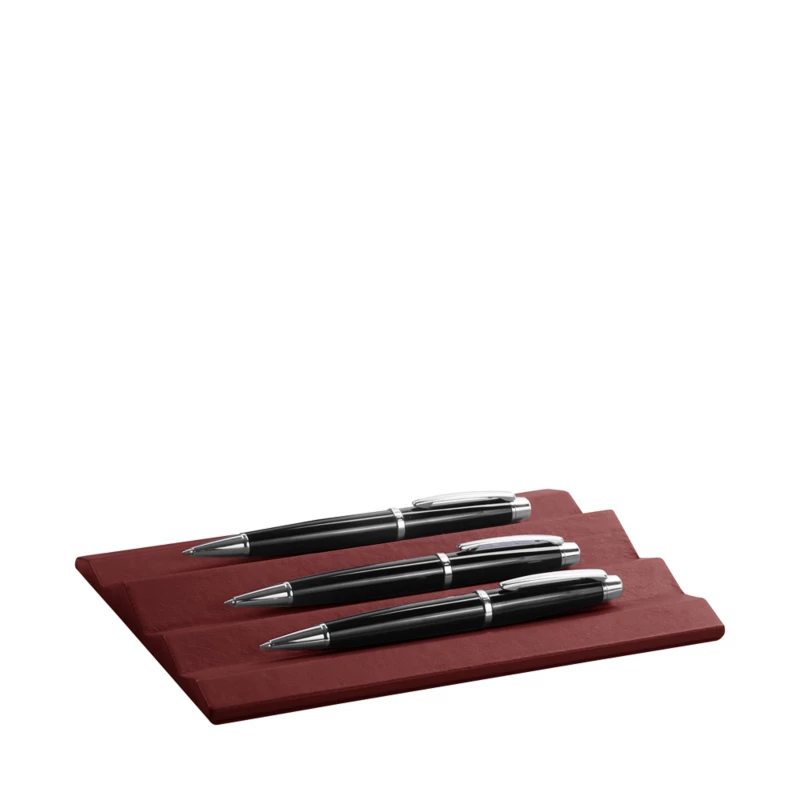 Utiliser tous les jours ce porte plumes pour 3 stylos est un vrai régal ! De conception ultra épurée, c'est une base en bois gainé en cuir naturel par nos meilleurs artisans. A la fois surprenant et si moderne par son design, ce plateau pour trois stylos ou plumes trônera en bonne place sur votre bureau professionnel ou à la maison. Dessous en microfibre soyeuse pour protéger efficacement vos bureaux les plus fragiles.